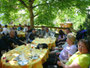 Zu guter Letzt trafen sich Alle zu einem schönen und geselligen Abschluss im schattigen Gastgarten der Pleschinger Stube. Der herrliche Tag konnte noch einmal Revue passieren. Es wurde dabei auch diskutiert, warum die erste Sportgruppe zweimal als erstes losfuhr, dann aber dann immer als zweites ankam - „kleine Stadtrundfahrten brauchen eben ihre Zeit „ Die ausdauerndsten Biker schafften es sogar die reine Fahrtzeit durch die gemeinsame Zeit im Gastgarten zu überbieten! Die 4 Tourguides nutzen die Gelegenheit zum Erfahrungsaustausch damit der Ablauf auch immer wieder verbessert werden kann, um so auch weiterhin allen Teilnehmern an den Touren einen gut organisierten Tagesplan anbieten zu können.